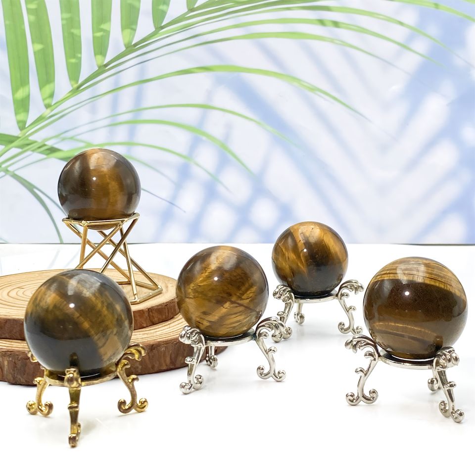Esfera de Ojo de Tigre Amarillo - Decoración de Cristal Única para el Hogar, Feng Shui, Sanación, Manualidades y Joyería
