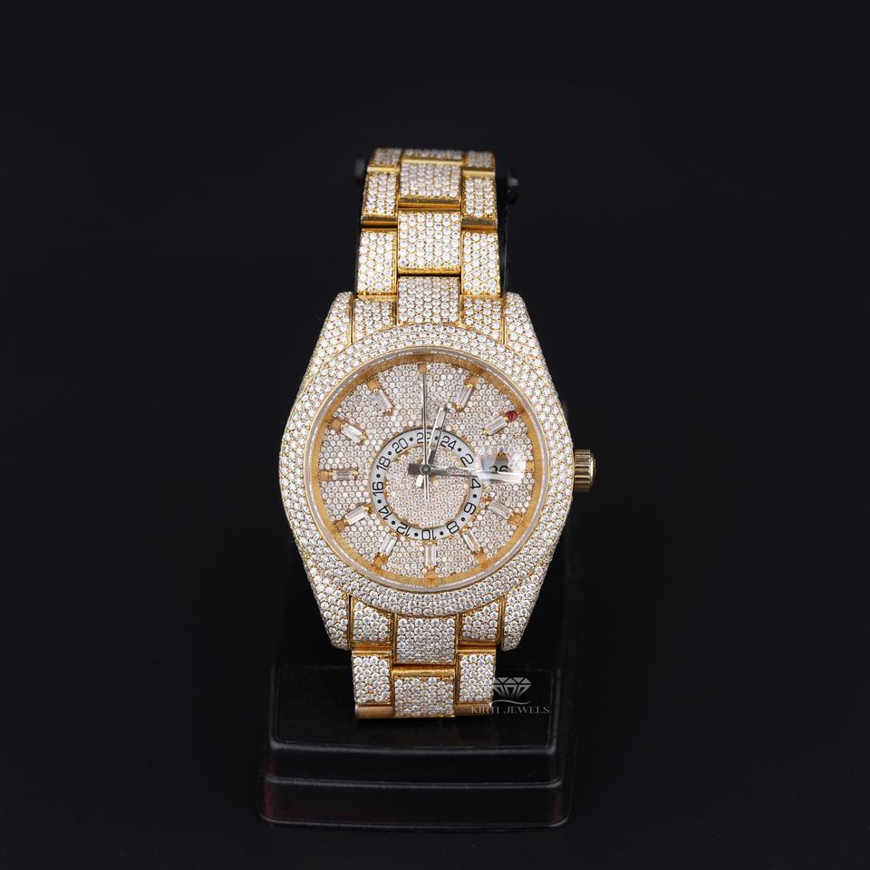 Marca:Round Dial Yellow Tone Baguette Moissanite Watch