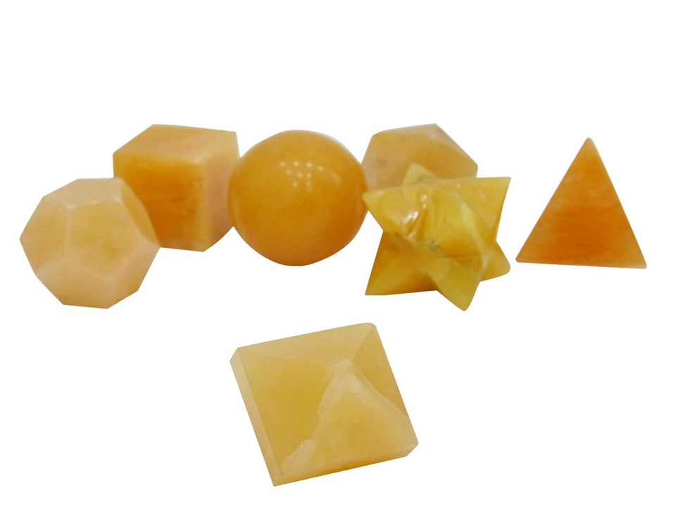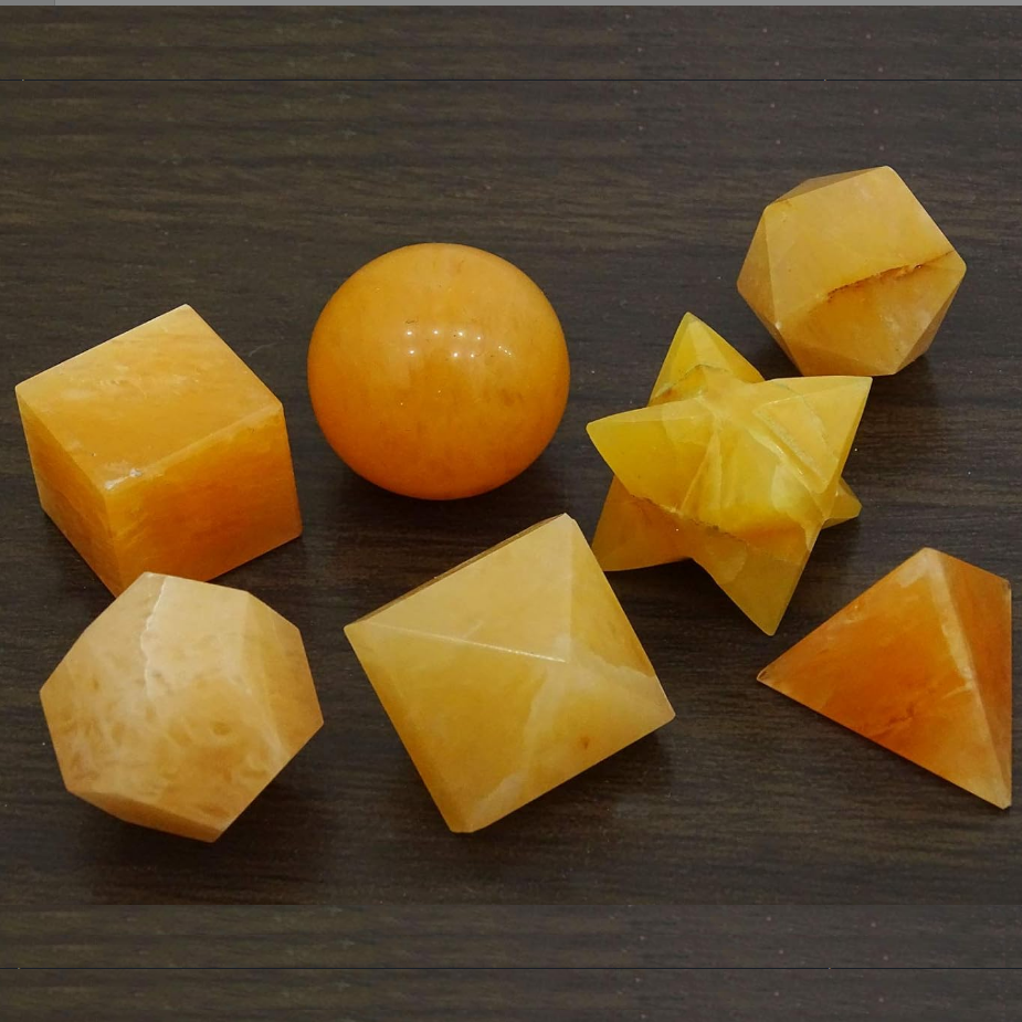 Juego de geometría de cristal de calcita amarilla, piedra natural sagrada tallada para curar sólidos platónicos, formas geométricas únicas