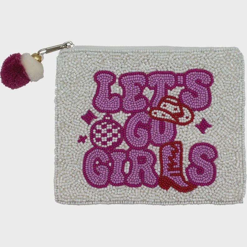 Monedero Vaquero de Alta Calidad, Color Amarillo Rani Blanco, con Cuentas, Hecho a Mano, Mini Monedero Occidental con Cierre de Cremallera, Material de Lona