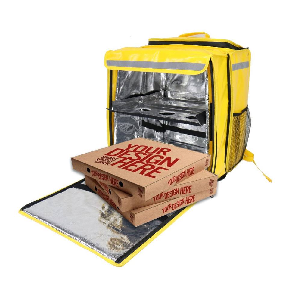 Bolsa de Reparto de Comida Aislada, Plegable e Impermeable con Logotipo Personalizado Amarillo, Bolsa para Pizza, Bolsa para Repartidores de Comida Caliente, Bolsa para Repartidores de Comida