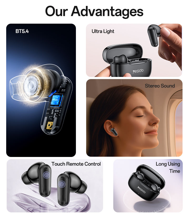 Yesido BT5.4 Control remoto táctil TWS Auriculares inalámbricos Tiempo de uso prolongado Sonido estéreo Auriculares inalámbricos TWS38