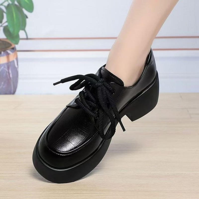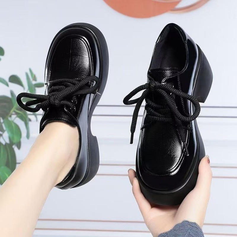 Mocasines de primavera para mujer de estilo británico Yi'erkang, suelas blandas de cuero genuino, zapatos individuales gruesos negros, suelas gruesas con cordones, no