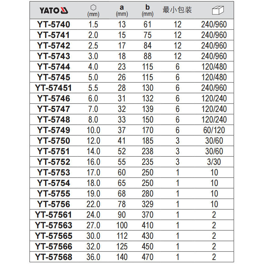 Llave Hexagonal Yiertuo de 7 Pulgadas, Métrica, Cromada, de Grado Industrial, Acero al Cromo Vanadio, Tipo L, YT-5740