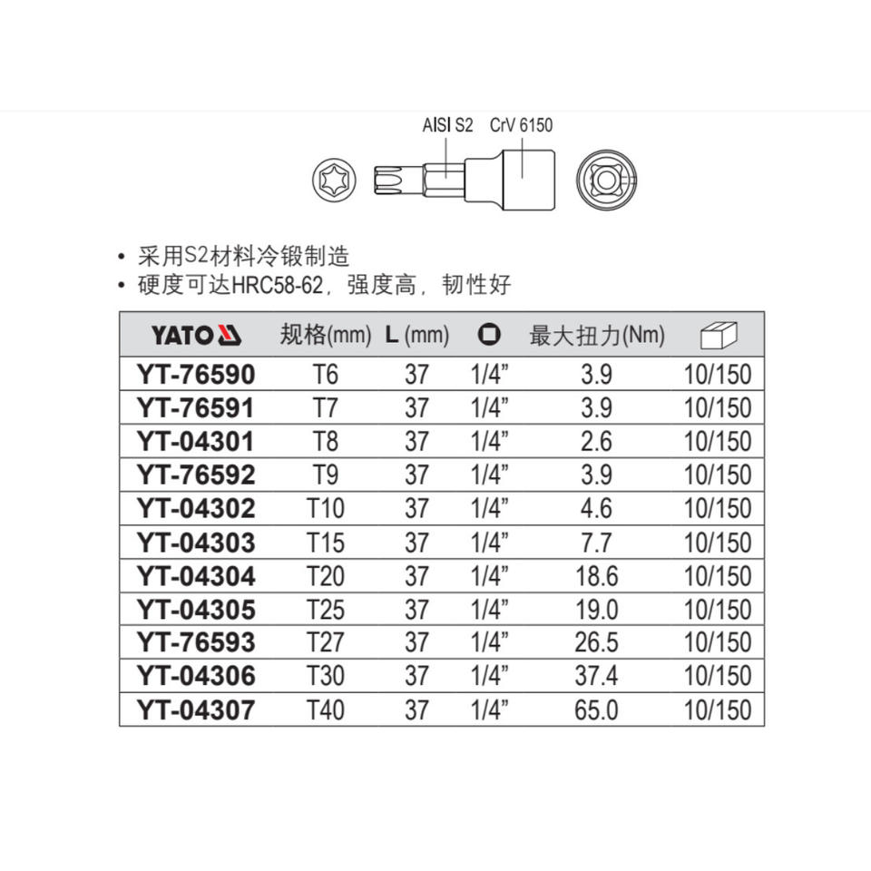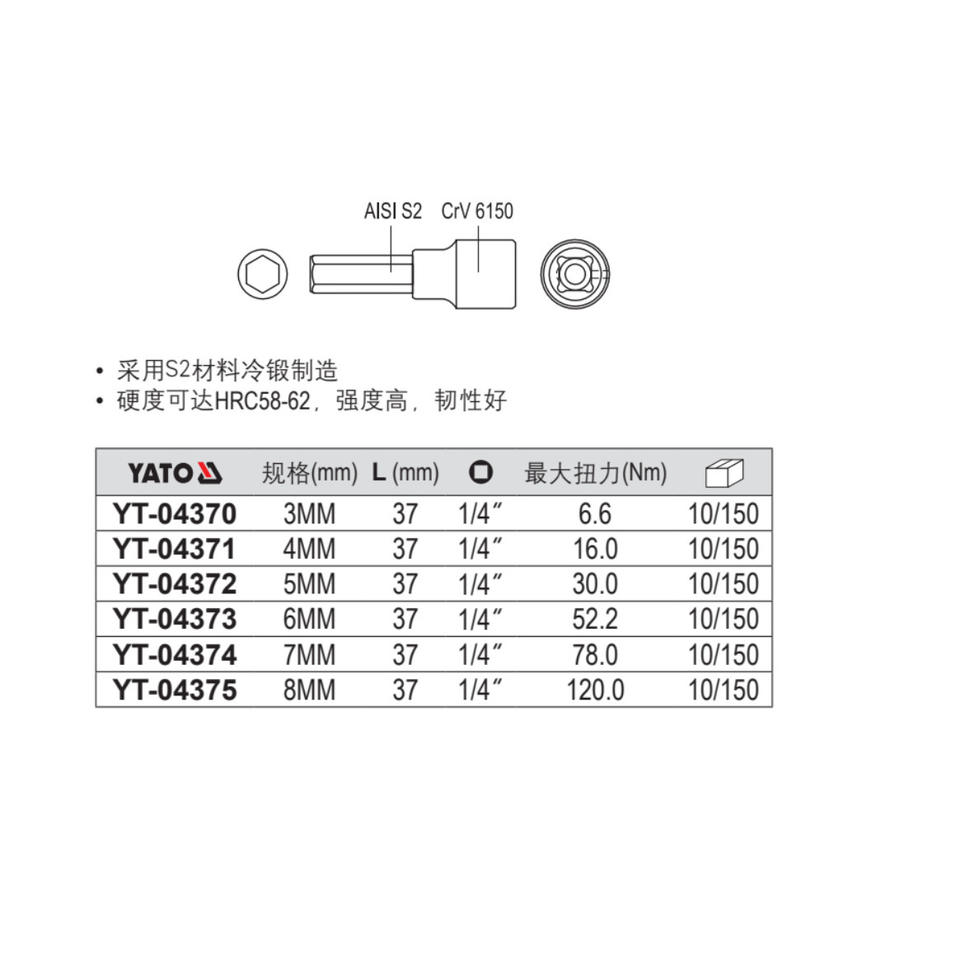 Llave de vaso Torx Yiertuo de 6.3 mm con accionamiento hexagonal cromado para reparación automotriz