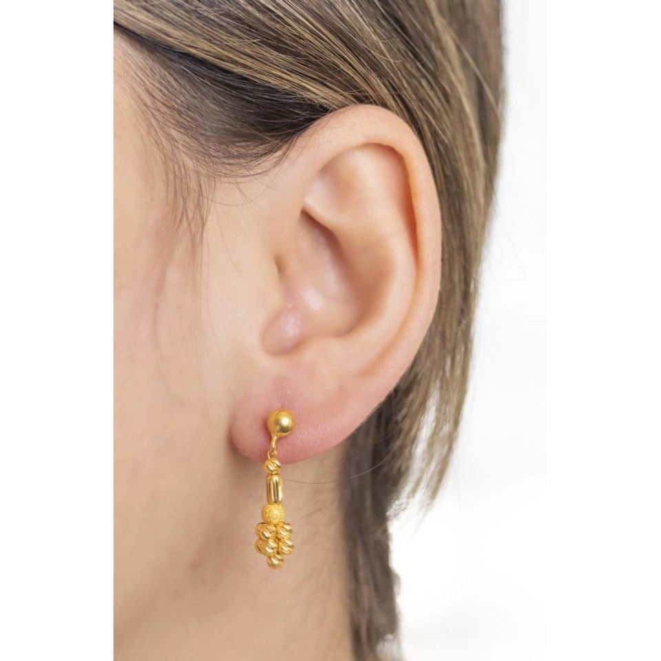 Pendientes Dorika Yiitba de Oro de 22 Quilates (3326) con Perla de Agua Dulce y Diamante, Oro de 14K, Estilo Religioso para Regalo de Boda o Fiesta