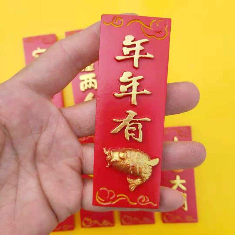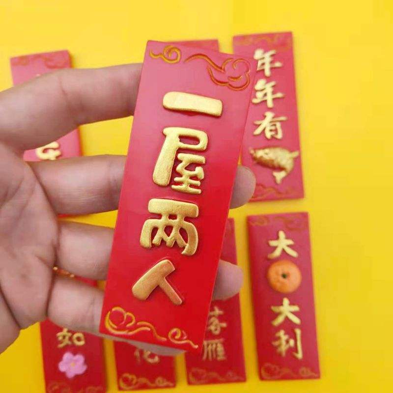 Yijia festivo Internet famoso imán de nevera 3D estereoscópico Año Nuevo Placa de personaje azulejo magnético, gran fortuna y Bene