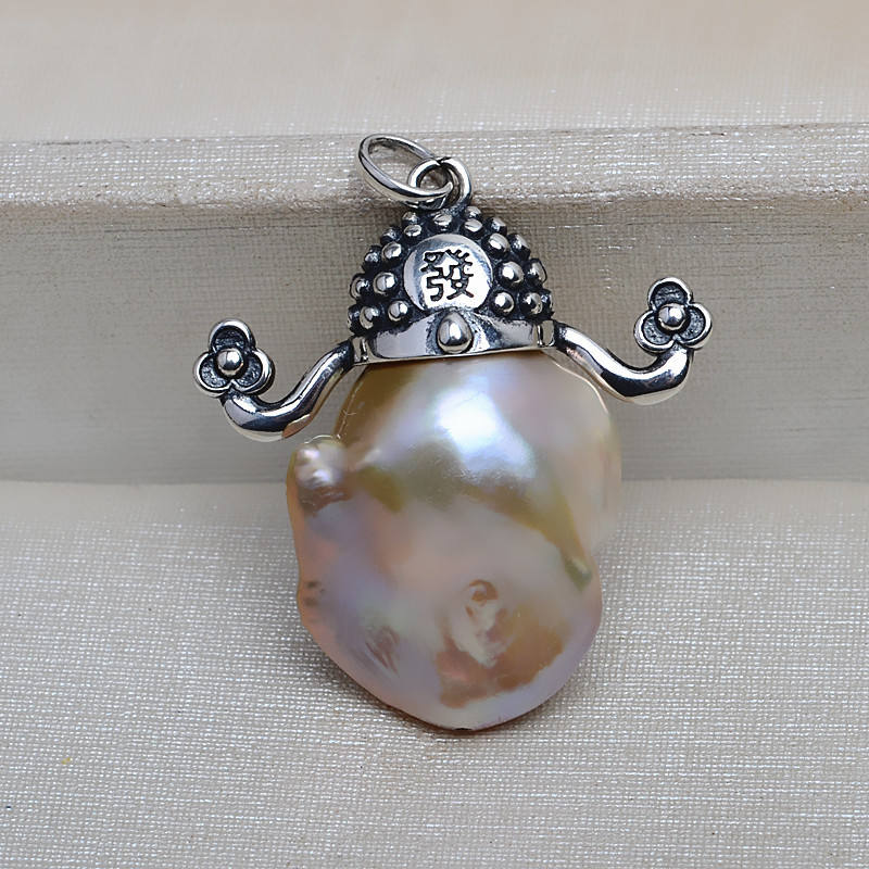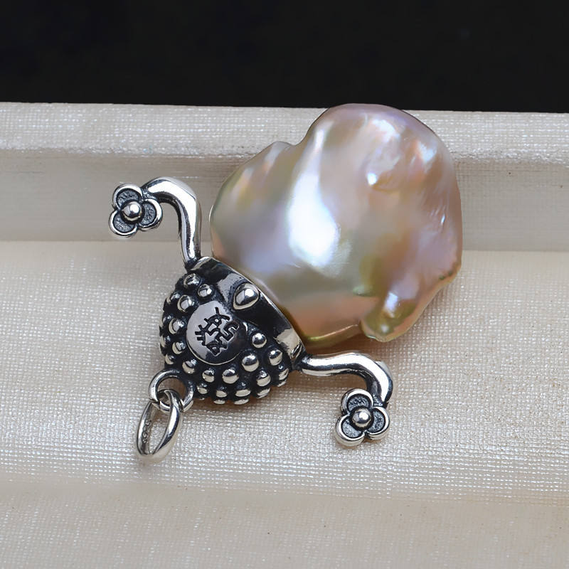 Colgante de Plata de Ley S925 Yintai con Diseño de Dios de la Riqueza para Mujer, Perla Barroca Grande de 13-17 mm, Accesorio de Joyería DIY 4070