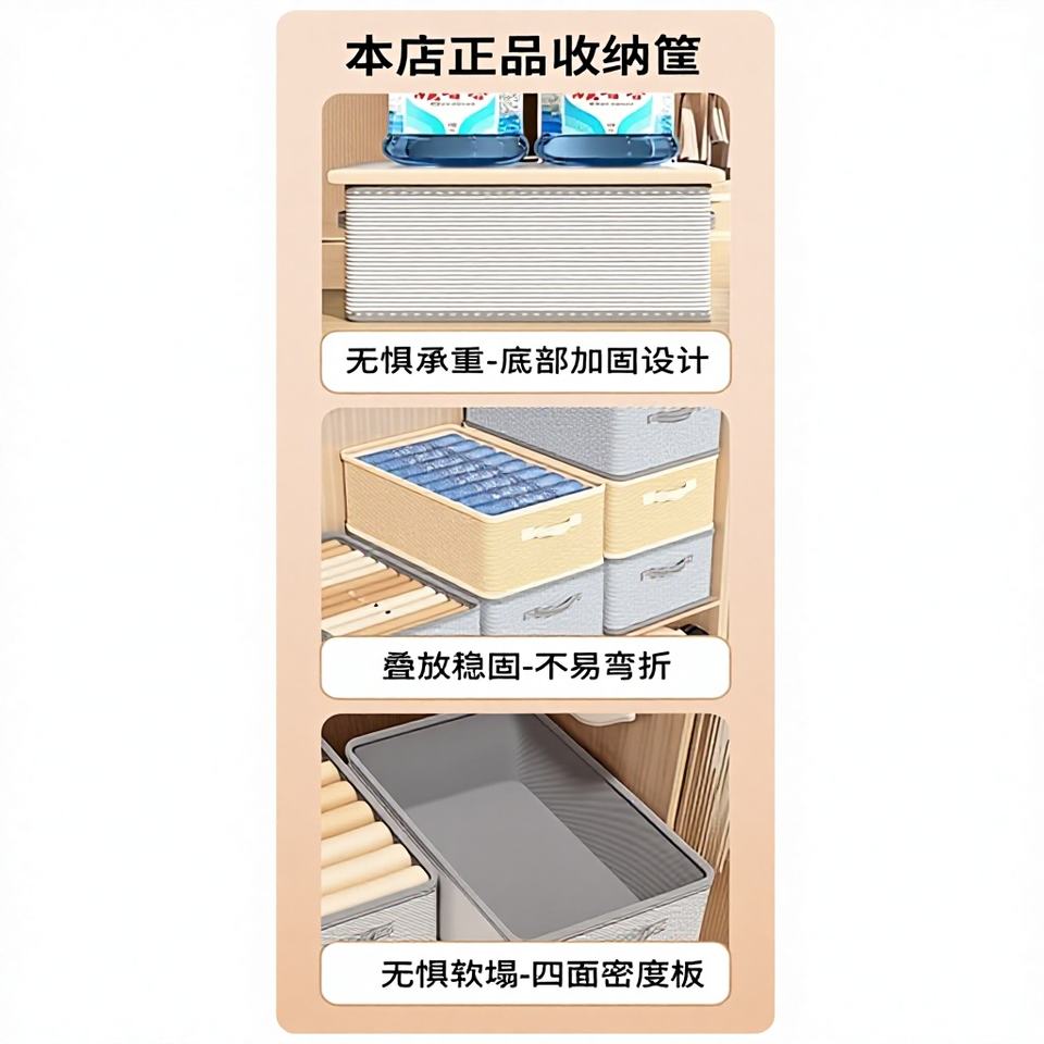 Cesta de Almacenamiento Plegable de Yiwu, Tipo Rectangular, Color Gris Beige con Rayas, Tela No Tejida, Apilable, Sin Tapa, para Ropa