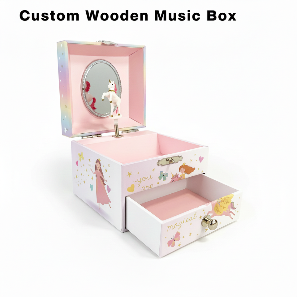 Caja de Música y Joyería de MDF Personalizada Yiyu, Diseño de Princesa, Almacenamiento de Madera Ecológico con Espejo, Regalo para Niñas