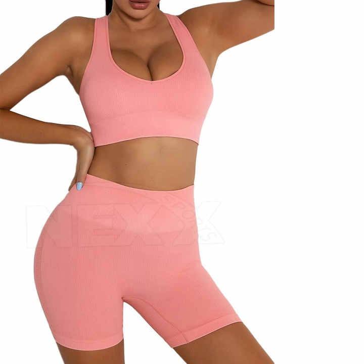 Conjunto de yoga con pantalones cortos sin costuras Cómodo Activewear Transpirable Elegante Flexible Ligero Traje Ideal para gimnasio Fitness