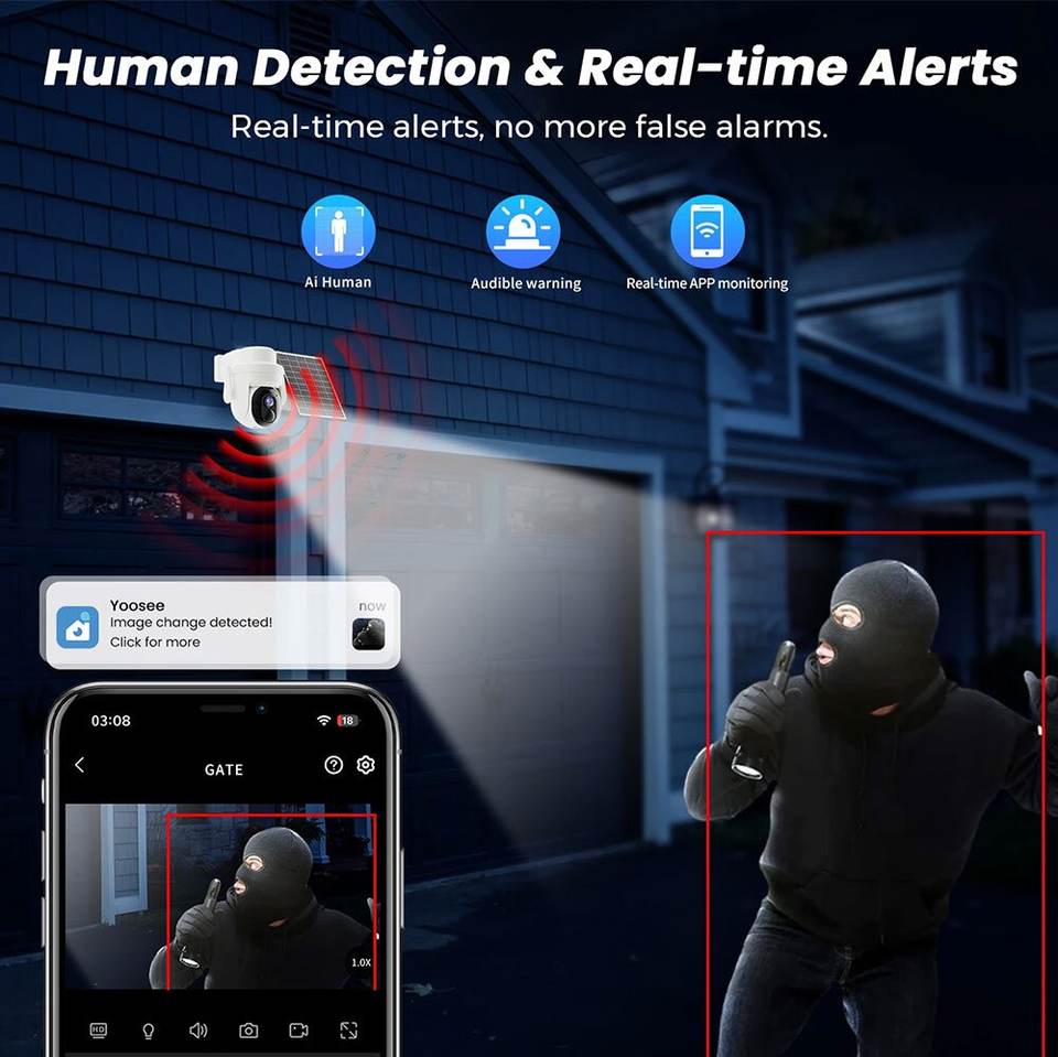 Cámara de Seguridad Inalámbrica Yoosee Inteligente, con Energía Solar, 4G, Alta Definición, Sonido y Luz, Alarma, Visión Nocturna a Todo Color, para Exteriores