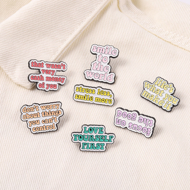 Alfileres de esmalte dignos, citas personalizadas, frases positivas, sé amable con tu mente, broche de Metal, insignia de solapa, regalos de joyería al por mayor