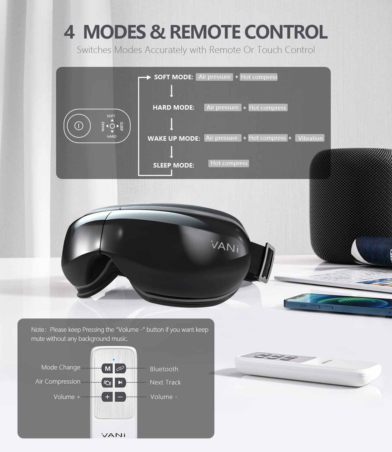 Características:Vibración, presión de aire, compresa caliente, Bluetooth escuchando música