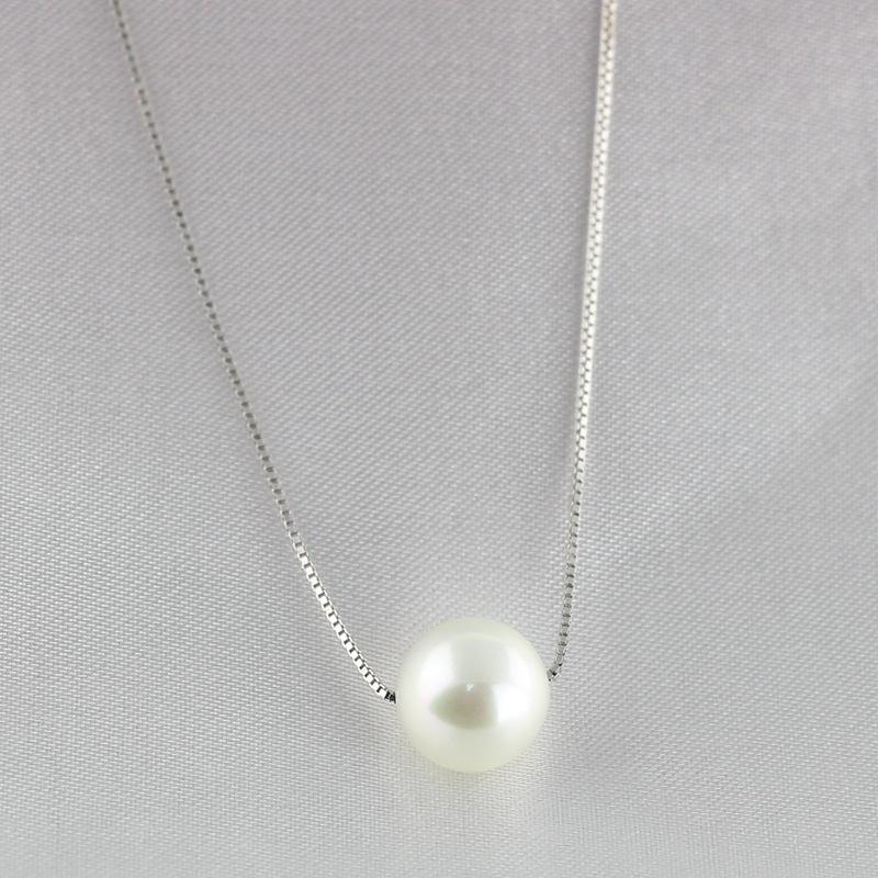 Collar con Colgante de Perla Simple de Plata 925, Juvenil y Moderno, con Cadena para Clavícula, Accesorio de Perla Individual