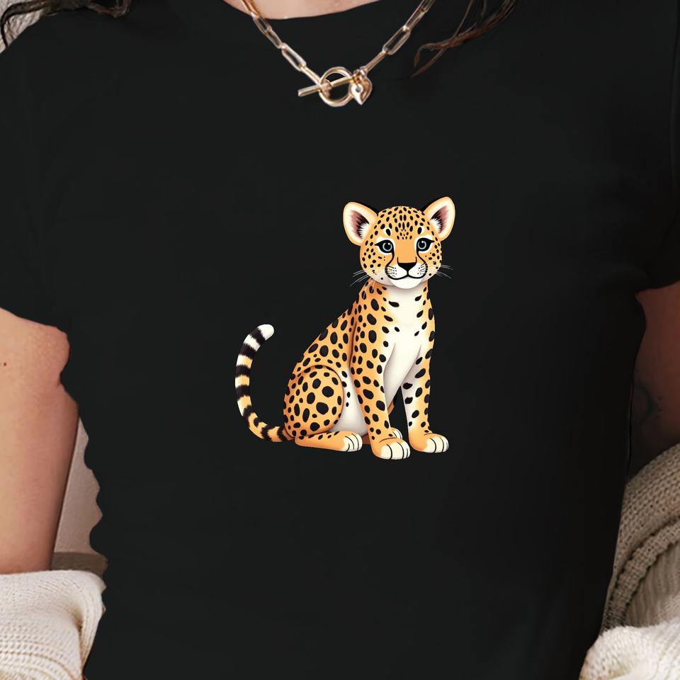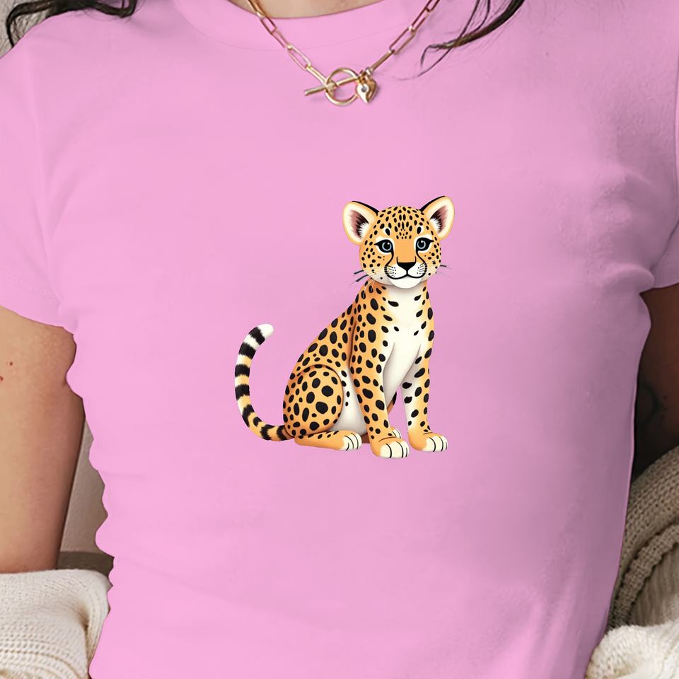 Camiseta corta de moda para mujer con ilustración de leopardo joven
