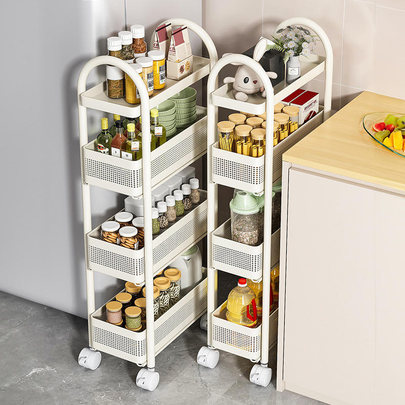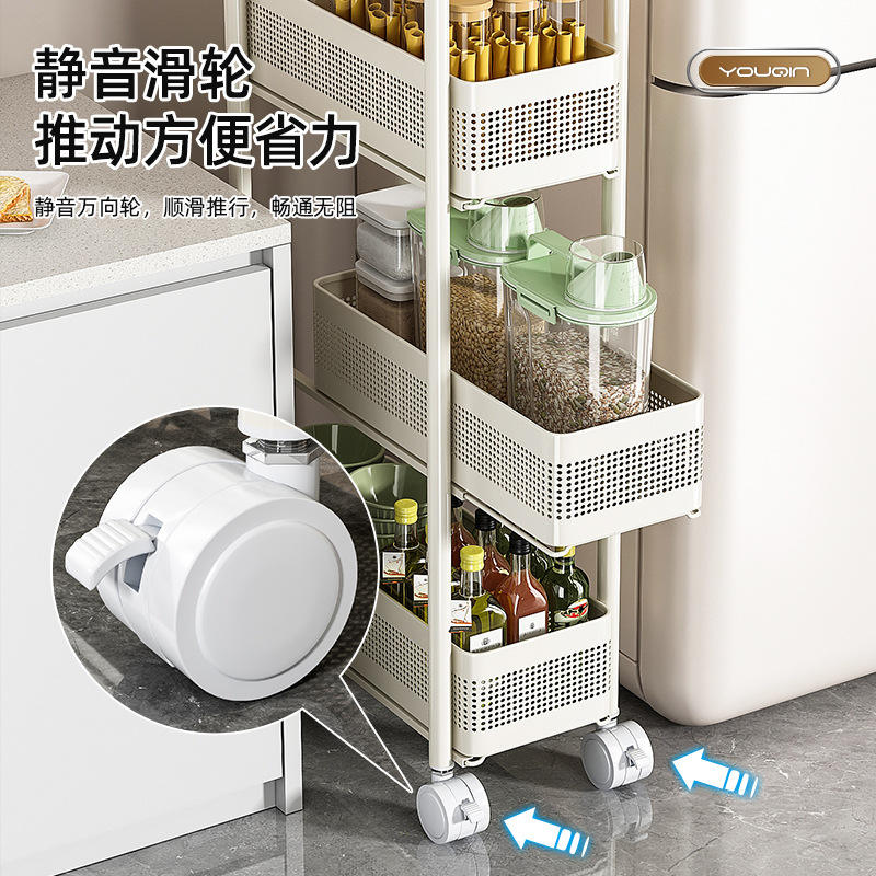 Carrito de Almacenamiento Metálico de Múltiples Niveles Youqin para Especias, para Cocina, Baño, Espacios Estrechos, Diseño Minimalista con Ruedas