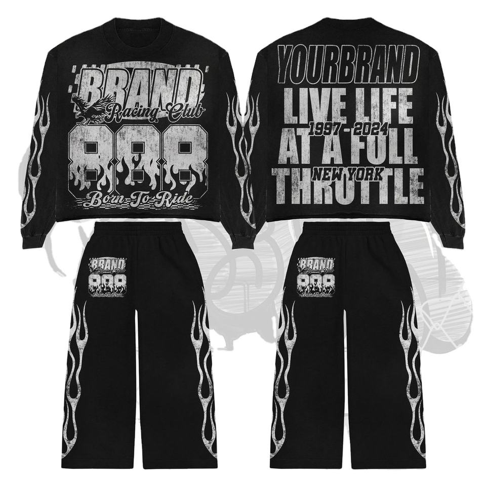 Nombre del producto::Chándal de estilo acampanado con lavado ácido de impresión de pantalla