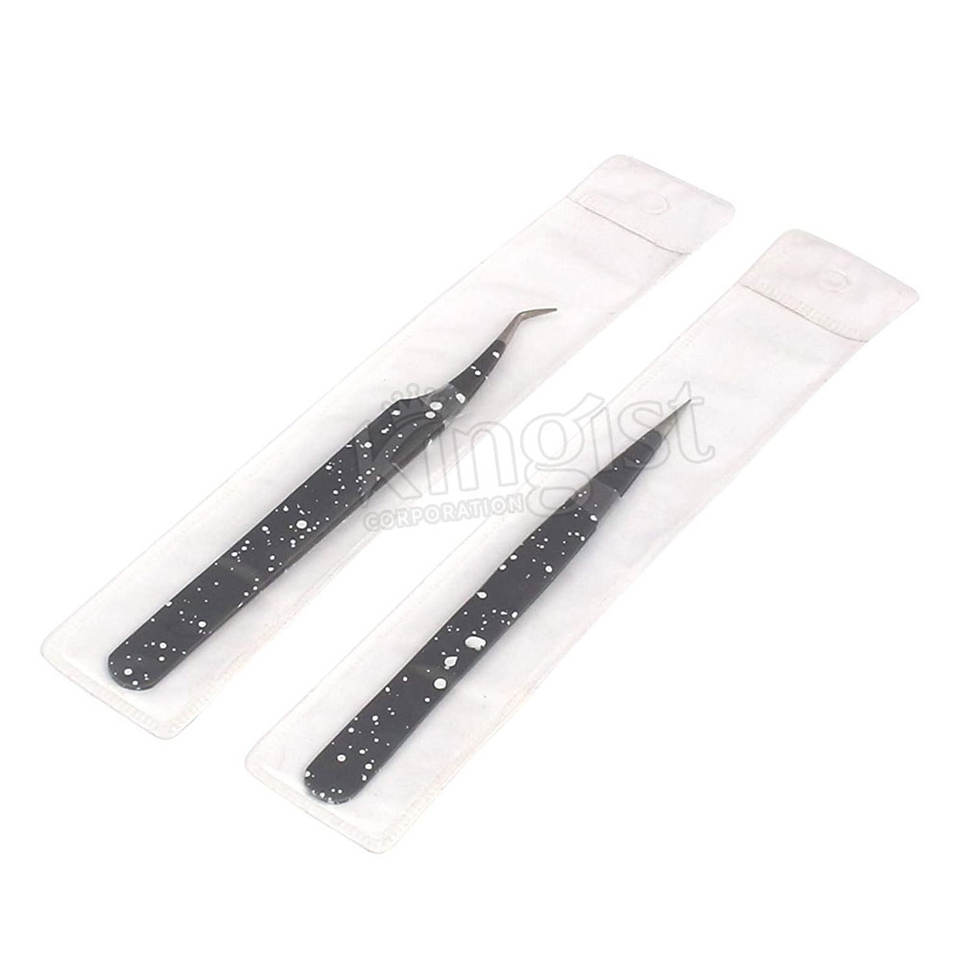 Pinzas de extensión de pestañas con punta inclinada de acero inoxidable profesional de Pakistán Diseño de logotipo personalizado de alta calidad KINGIST