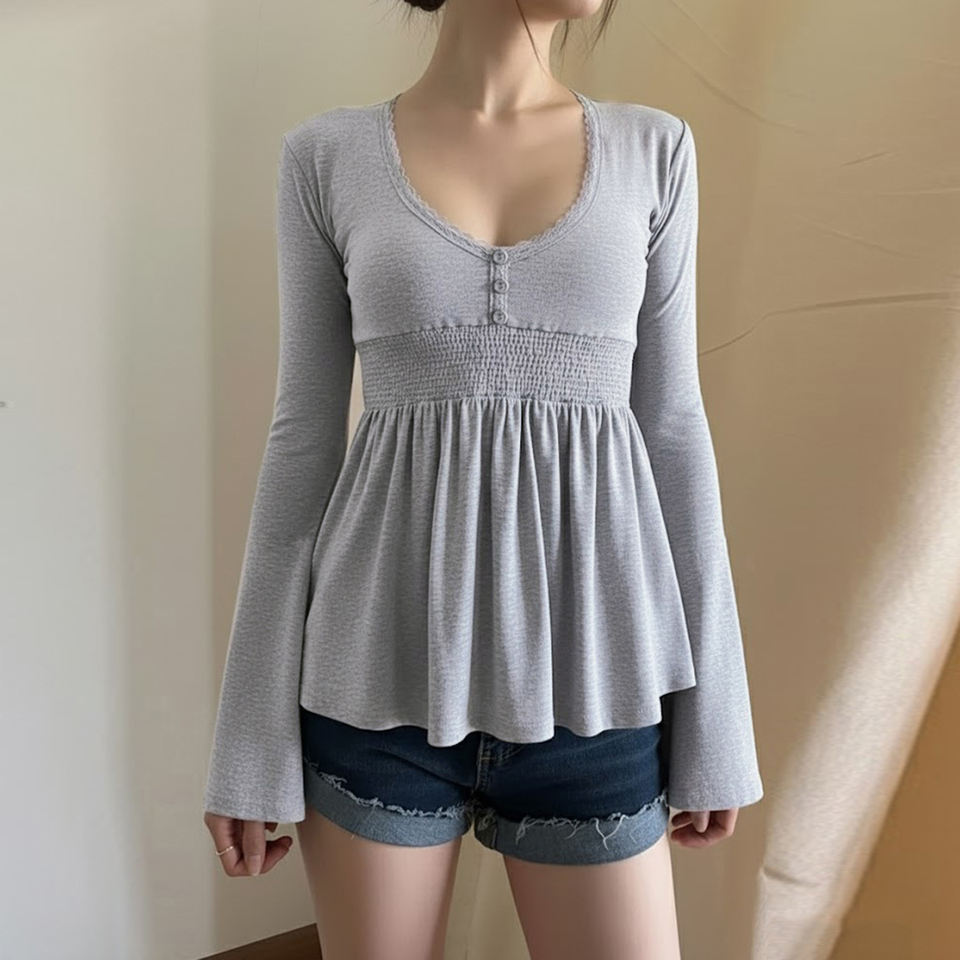 Decoración:Encaje, Botón, Tela de retales, Volantes, Plisado