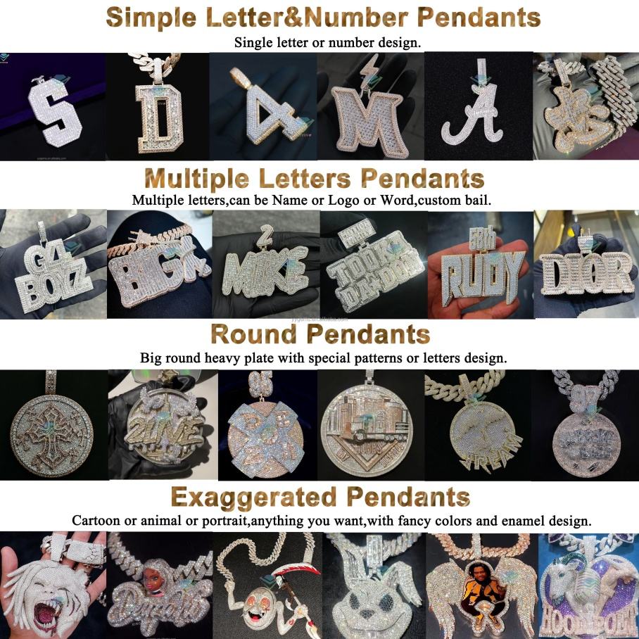 Colgante Personalizado Yu Ying con Símbolo, Plata 925, Redondo, con Incrustaciones de Moissanita VVS, Oro Rosa, Letra en Relieve, Joyería Hip Hop