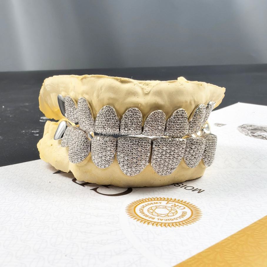 Rejilla Dental Personalizada Yu Ying con Incrustaciones de Moissanita Brillante, Plata de Ley 925 Chapada en Oro, Estilo Hip Hop para Raperos, Joyería Dental