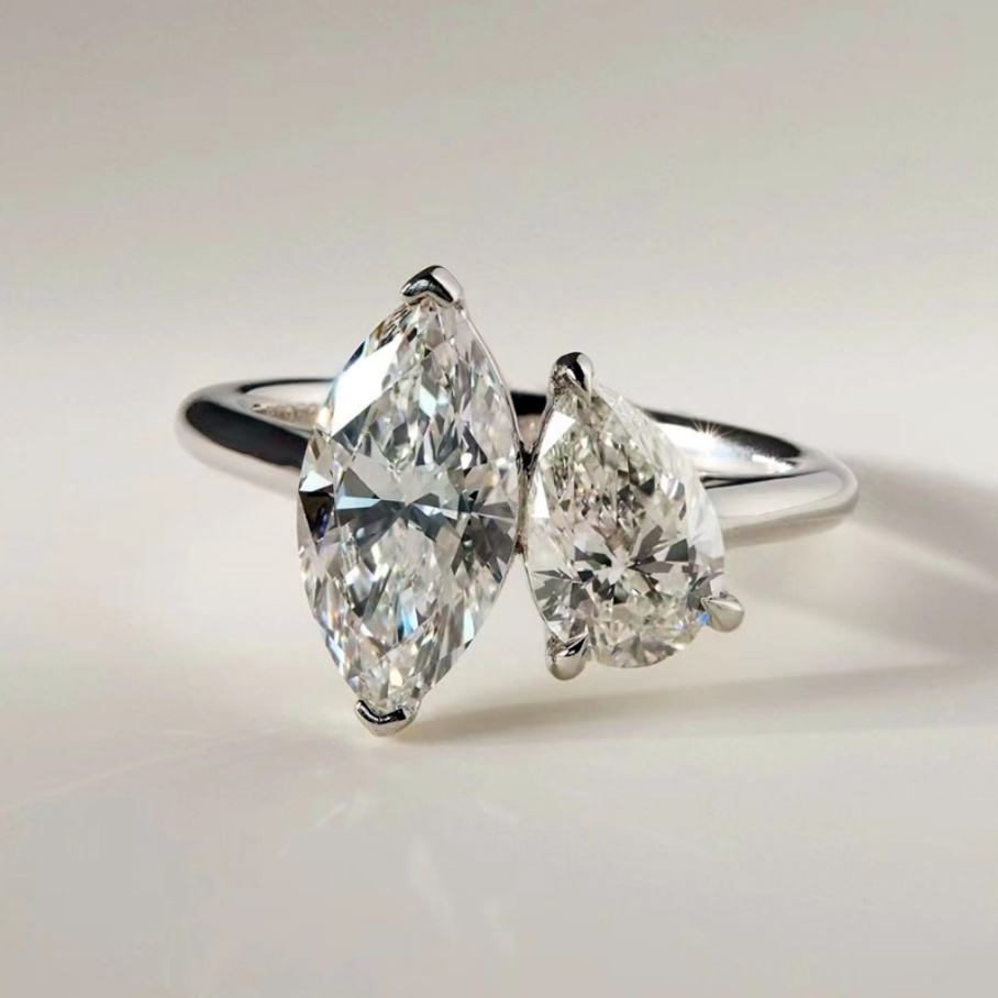 Nombre:Anillos de oro amarillo de 14 quilates con moissanita D/VVS1 Pear&Asscher
