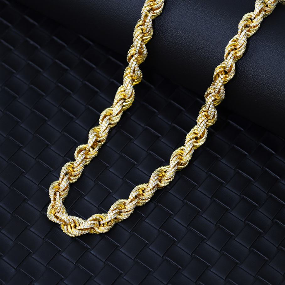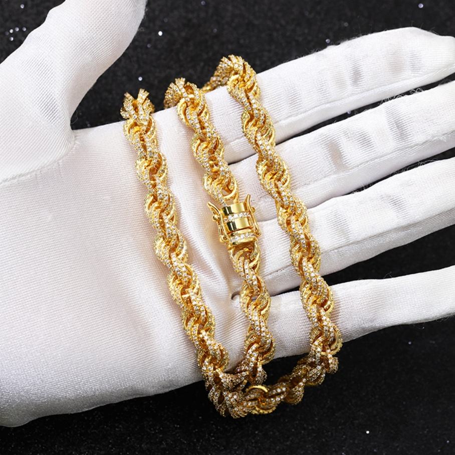 Collar de Cadena Cubana de 8 mm de Ancho con Incrustaciones de Cuerda Plateada, Diseño Exclusivo de Yu Ying, Chapado en Oro de 18K, Diamante Moissanite VVS Brillante