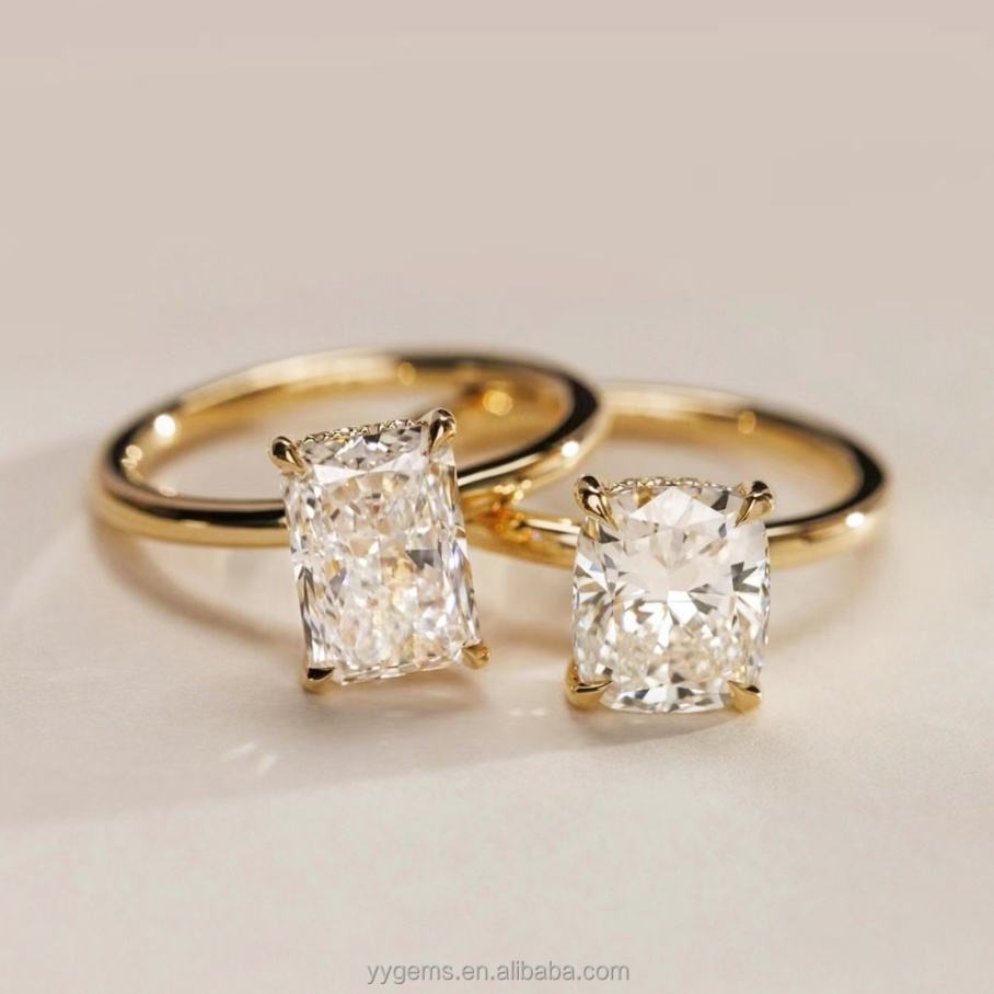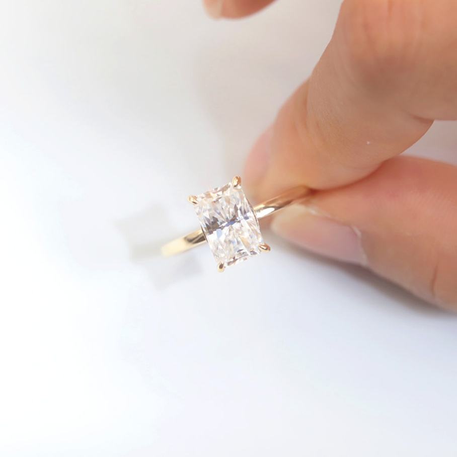 Anillos de joyería fina con solitario de moissanita tallada y triturada con hielo radiante de 14 quilates