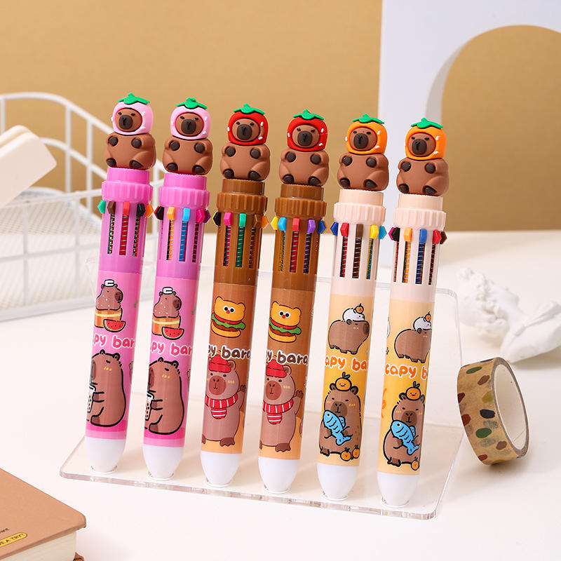 YuB 36 Uds Kawaii Capybara 10 colores bolígrafo multicolor prensa bolígrafos para escribir estudiante pintura al óleo pluma escuela Oficina suministros