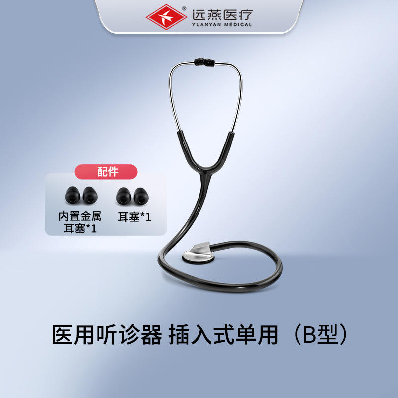 Estetoscopio Yuanyan Tipo Inserto, de un Solo Uso, Tipo B, de Aleación de Zinc Negra, Dispositivo Médico para Médicos, Estudiantes y Uso Doméstico