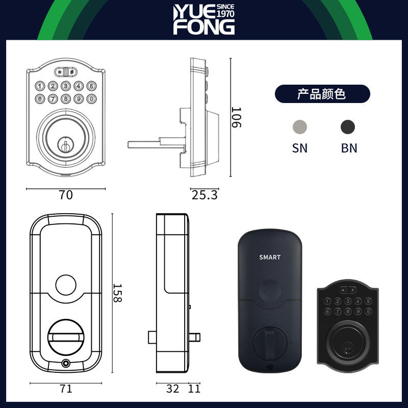 Cerradura Inteligente Yuefeng, Cerradura Digital para Puerta con Huella Dactilar y Contraseña, Aleación de Aluminio para Uso Doméstico