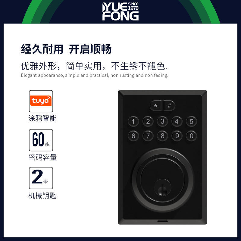 Cerradura Inteligente Yuefeng con Contraseña Digital, Cerradura de Puerta de Aleación de Aluminio para Interiores y Exteriores con Teclado y Mecanismo de Cilindro