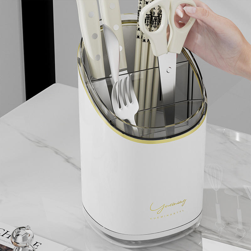 Escurridor Redondo Yueming para Cocina, Porta Palillos con Borde Dorado, Contenedor Multiusos para Cubiertos