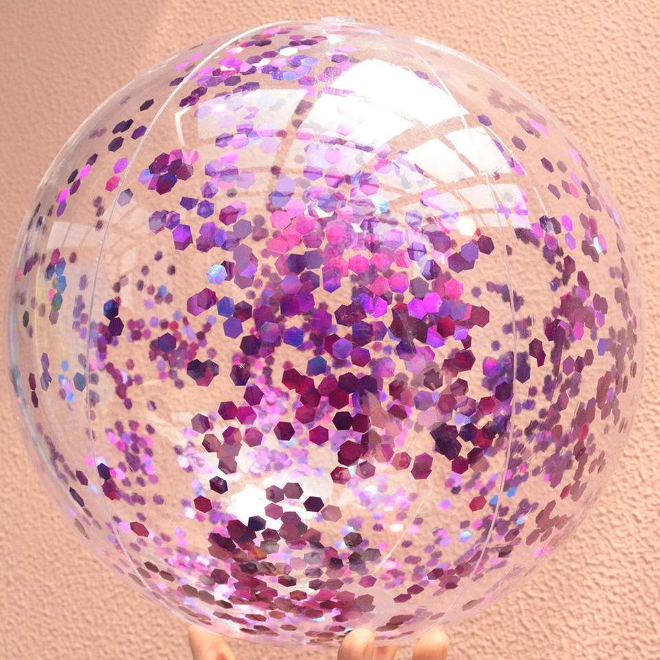 Pelota de Playa Inflable de PVC Yuglow con Lentejuelas Brillantes, Juguete Acuático para Niños, Deportes Acuáticos, Fiesta en la Piscina