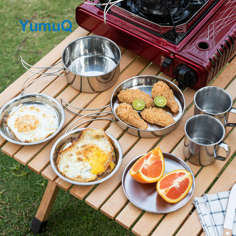 YumuQ Camping Cookware Mess Kit Accesorios de acero inoxidable Utensilio de cocina y juego de cocina al aire libre