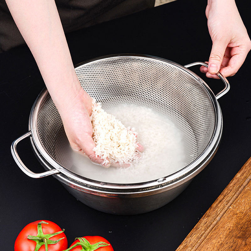 Escurridor de verduras de acero inoxidable a precio de fábrica Yurtrain, colador, lavadora de arroz grande, mango Binaural, Grado Alimenticio, duradero