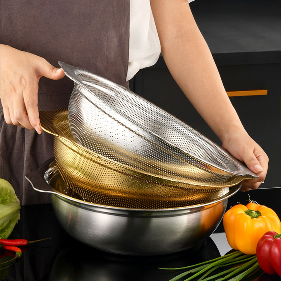 Yurtrain Colador de Arroz de Acero Inoxidable Estilo Japonés con Filtro Microporoso y Asa Metálica para Cocina