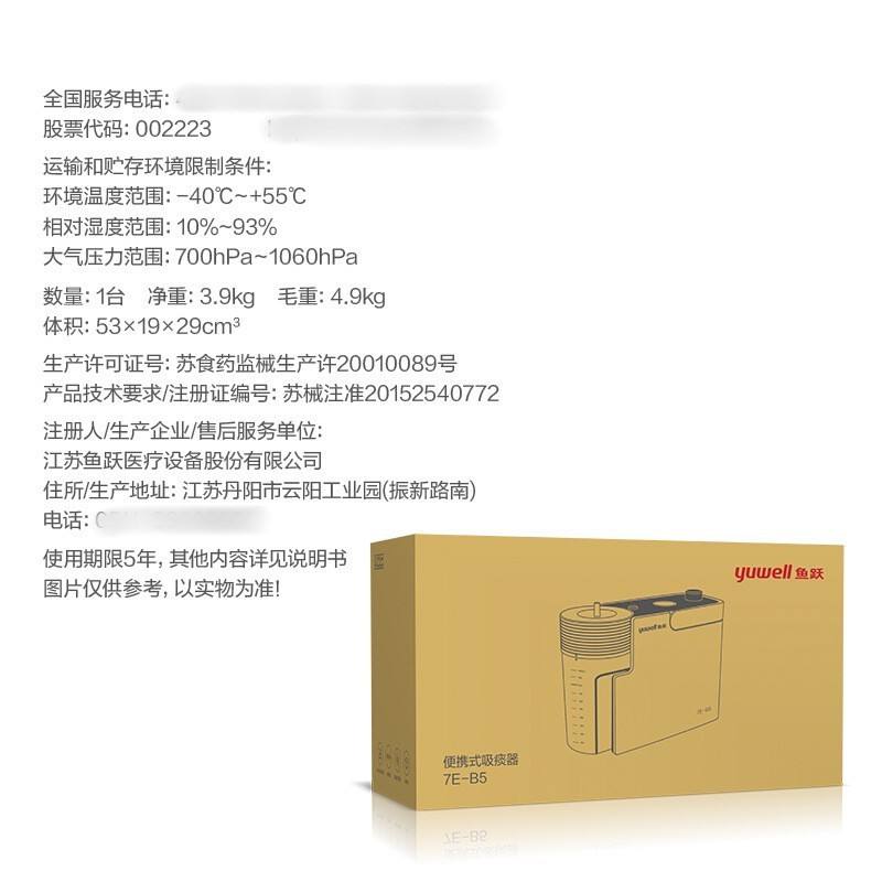 Máquina de succión eléctrica portátil Yuwell 7E-B5, batería recargable para uso doméstico, adultos, niños, bebés, ancianos