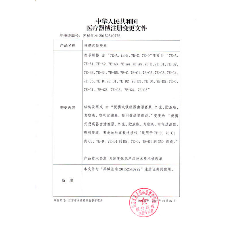 Jiangsu Medical Device Registration Certificate 20162200970