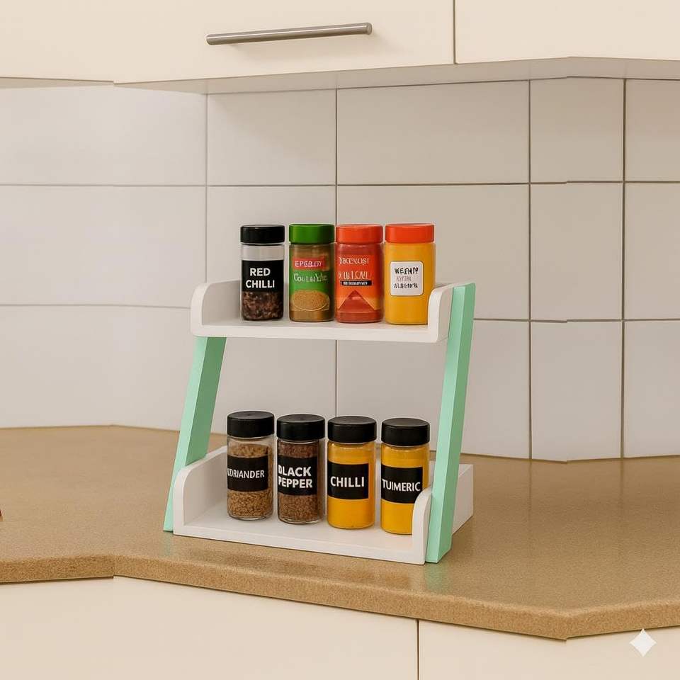 Organizador de Especias en Forma de Z para Encimeras y Armarios de Cocina | Madera MDF de Primera Calidad | Estante de Almacenamiento para Especias y Frascos