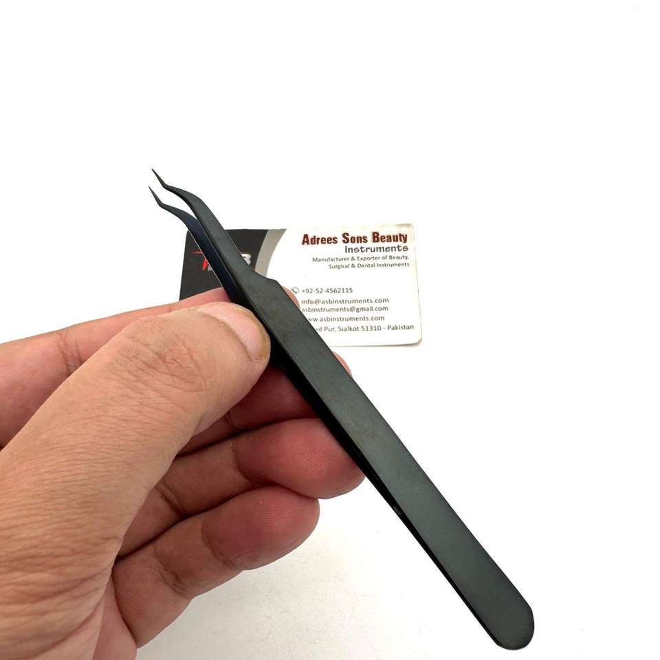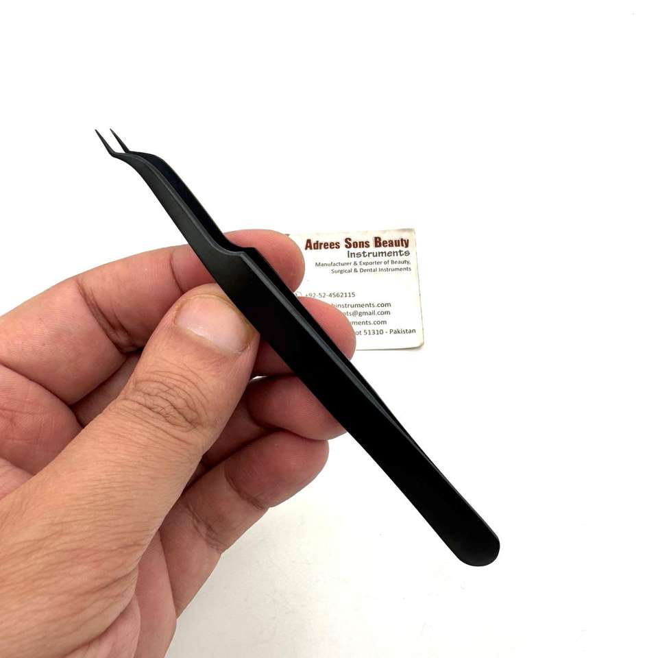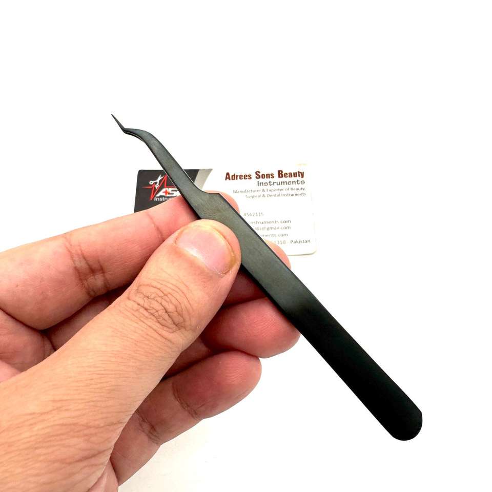 Pinzas Tipo Z para Aislamiento, Color Negro Mate Plasma, Impresión de Logotipo Personalizada, Pinzas para Pestañas con Mango Cómodo y Sostenible