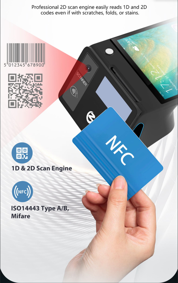 Terminal Punto de Venta Z108 con Google GMS, Pantalla Táctil de 8 Pulgadas, Android 13/14, Impresora 80, NFC/Código QR, Sistema de Punto de Venta para Restaurantes
