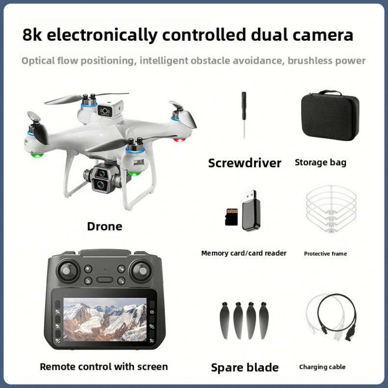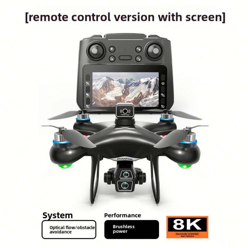 Dron Z3 para Principiantes con Pantalla de Control Remoto, Posicionamiento de Flujo Óptico, Quadcopter con Motor sin Escobillas, Juguete Aéreo con Cámara Dual 4K