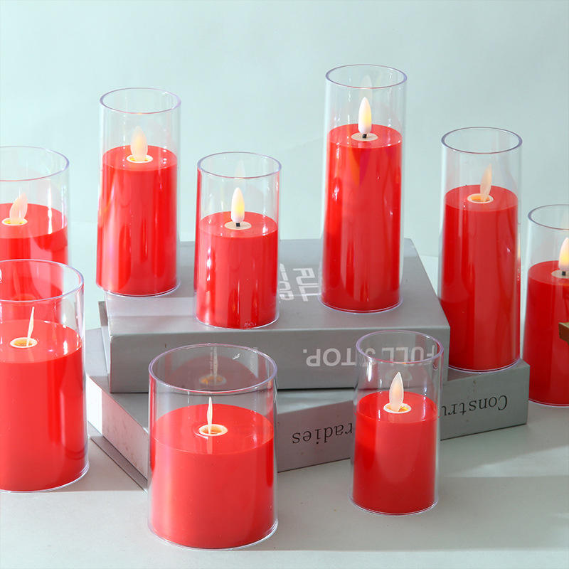 Velas de Pilar rojo alimentadas por batería LED para el hogar Z38, centros de mesa para fiesta de boda con modelo remoto, vela de tarro sin llama
