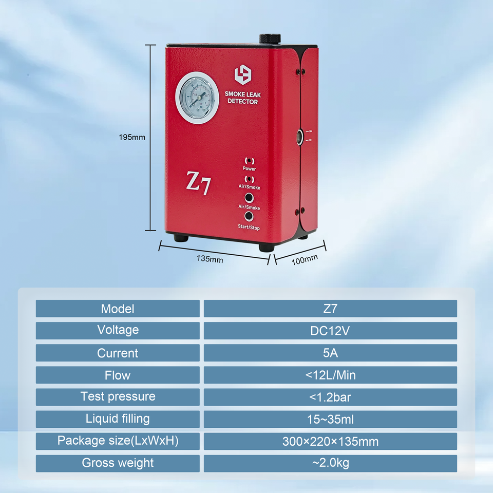 Detector de Fugas de Humo Z7 de Bajo Consumo con Apagado Automático, Indicación de Presión y Diagnóstico Fácil de Usar