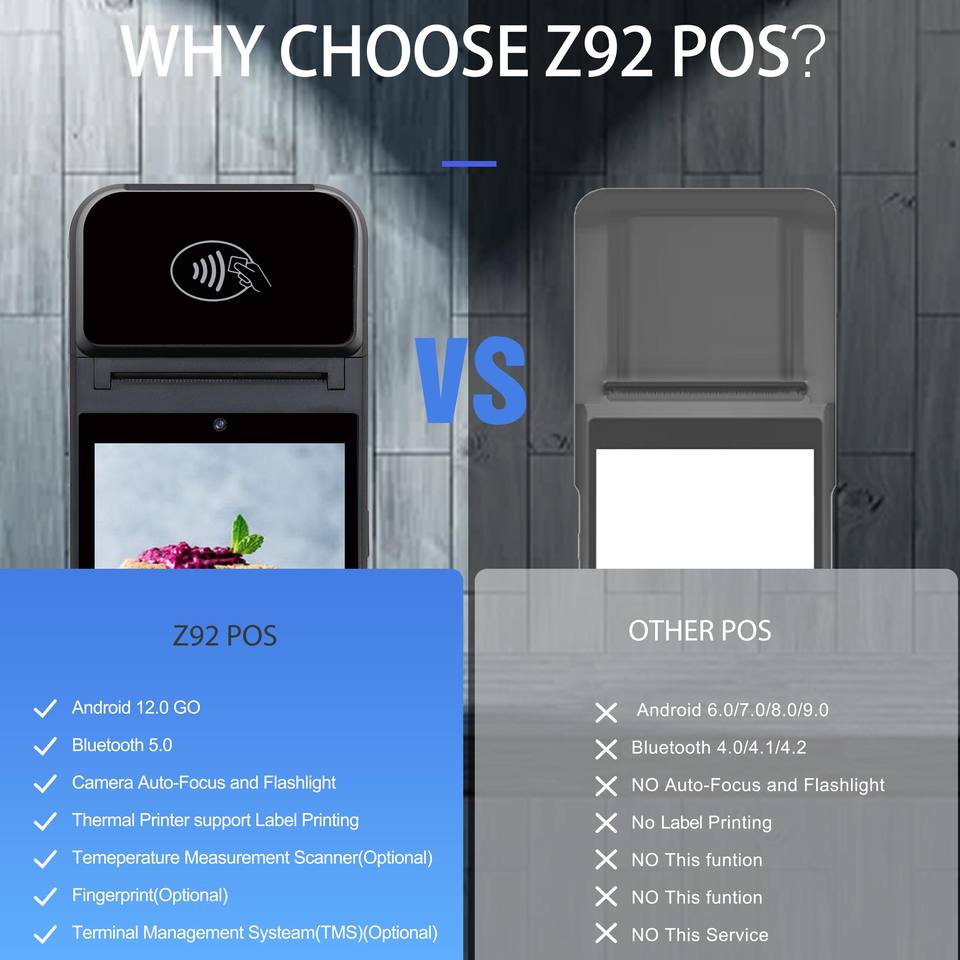 Terminal POS Android Z92 con Android 13.0, Lector NFC, Escáner de Códigos de Barras y Códigos QR, e Impresora Térmica