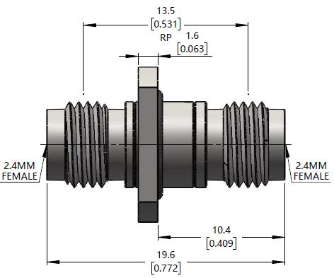 Adaptador ZCOM 2.4(F)-2.4(F) Hembra a Hembra de 2.4 Pulgadas con Brida de 4 Orificios, Bajo VSWR, Baja Pérdida de Inserción, Conector Coaxial RF de CC-50GHz