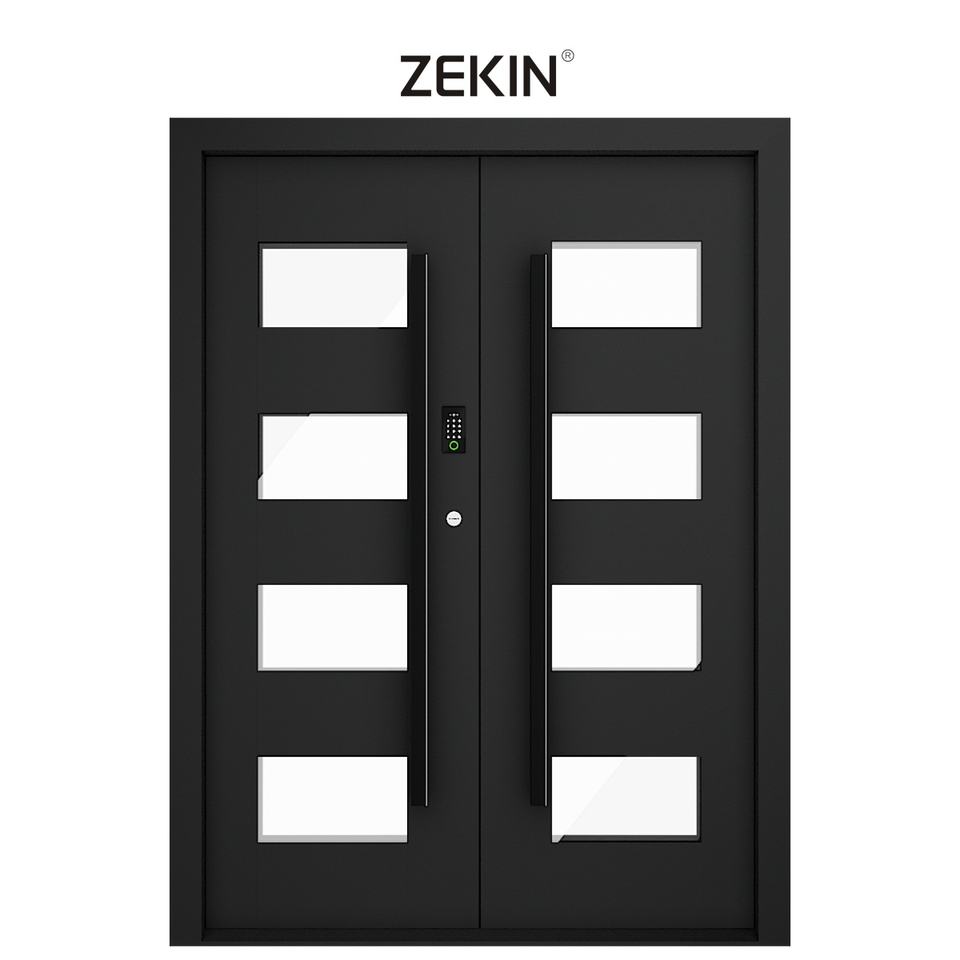Puerta de Entrada de Lujo ZEKIN, Diseño Chino Moderno, Madera Maciza, Acero Inoxidable, Vidrio, Puerta Batiente para Casa, Oficina, Hotel, Villa