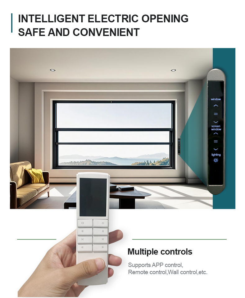 Ventana Corredera Vertical Automática Retráctil Eléctrica ZEKIN, de Aluminio con Doble Vidrio Templado, para Balcón y Otros Usos
